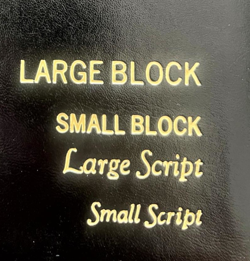 - Large Block (24 pt.)- 16 character limit (including spaces)